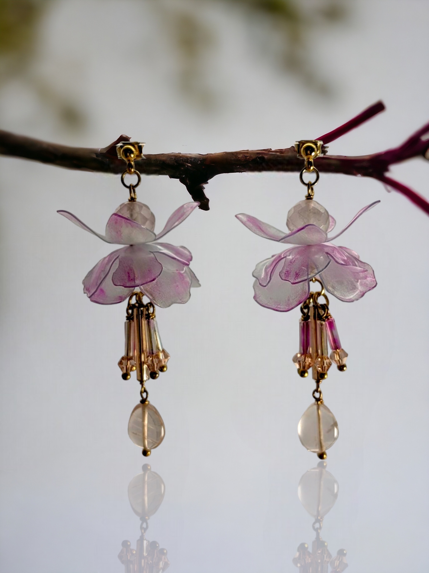 Embrace bold elegance with our Fuchsia Flair Earrings, crafted from recycled PET bottles for a sustainable statement. Adorned with shimmering glass beads and a centerpiece of rose quartz gemstone, these earrings radiate a captivating charm. Make a colorful statement with each wear, showcasing your eco-conscious style and vibrant personality.