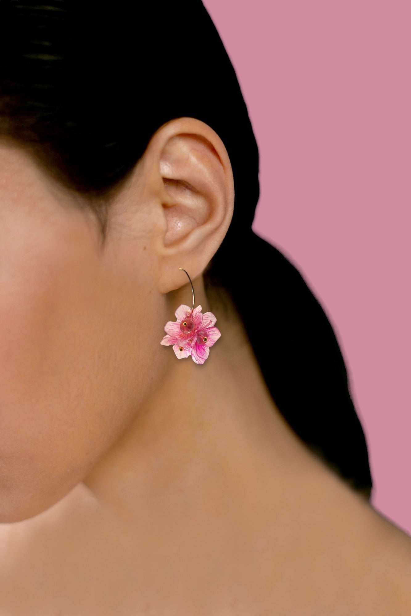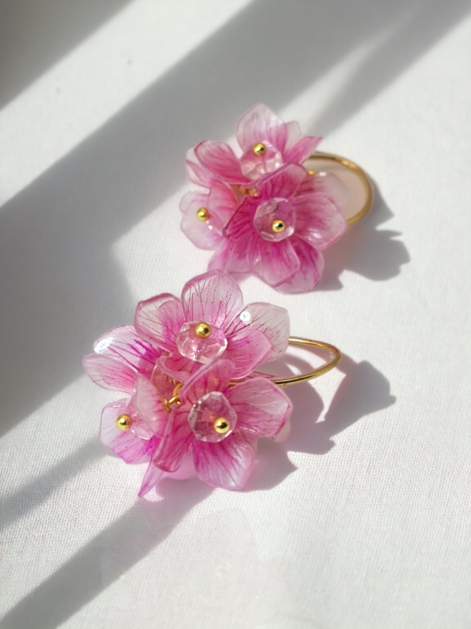 Embrace the enchanting melody of “Pink Serenade” earrings, where eco-conscious elegance harmonizes with sparkling charm. Delicate hydrangea flowers, crafted from sustainable plastic, exude a soft pink allure. Enhanced with glistening pink crystals, these earrings serenade with a touch of glamour, creating a truly captivating accessory for eco-friendly fashionistas with a taste for refined beauty.